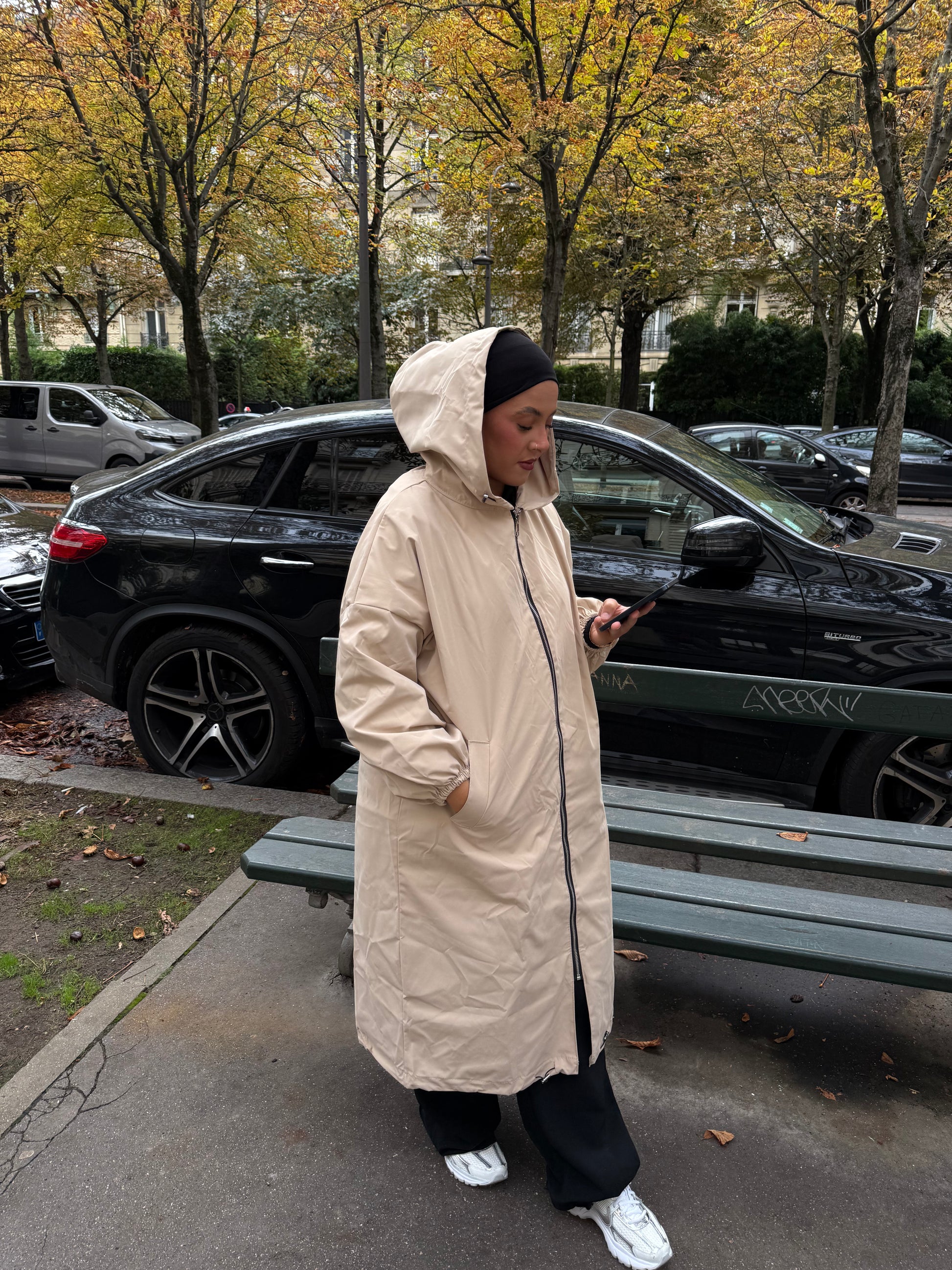 Imperméable avec capuche à poches sur les côtés et élastique en bas pour ressérer